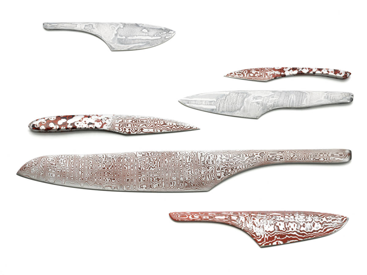 David Kaiser verbindet in seinen Messern aus Damaszenerstahl neue Gestaltungsmöglichkeiten – den Einsatz von Farbe – und führt zugleich eine traditionelle Technik innovativ weiter. Er erzielt damit auch eine Erweiterung der Funktionalität und der alltäglichen Gebrauchsweisen.
