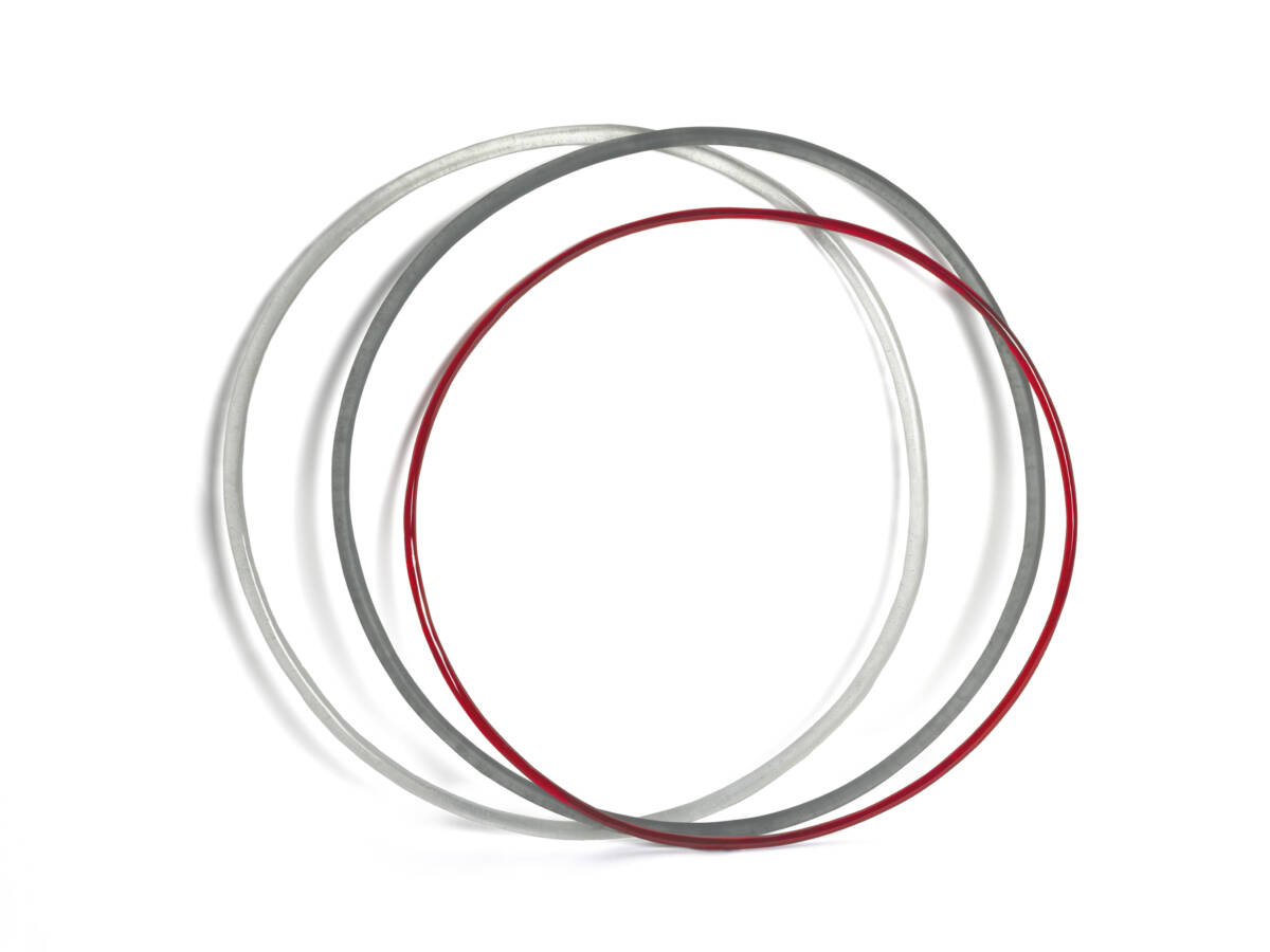 Ravit Hefer’s textile works fascinate with their splendor and ornamentation as well as their unusual construction, in which the fibres themselves form the framework, but at the same time break through the expectations associated with a grid. The three-dimensional, voluminous form has an unusual and dynamic effect. The works seem to oscillate between control, spontaneity and freedom.