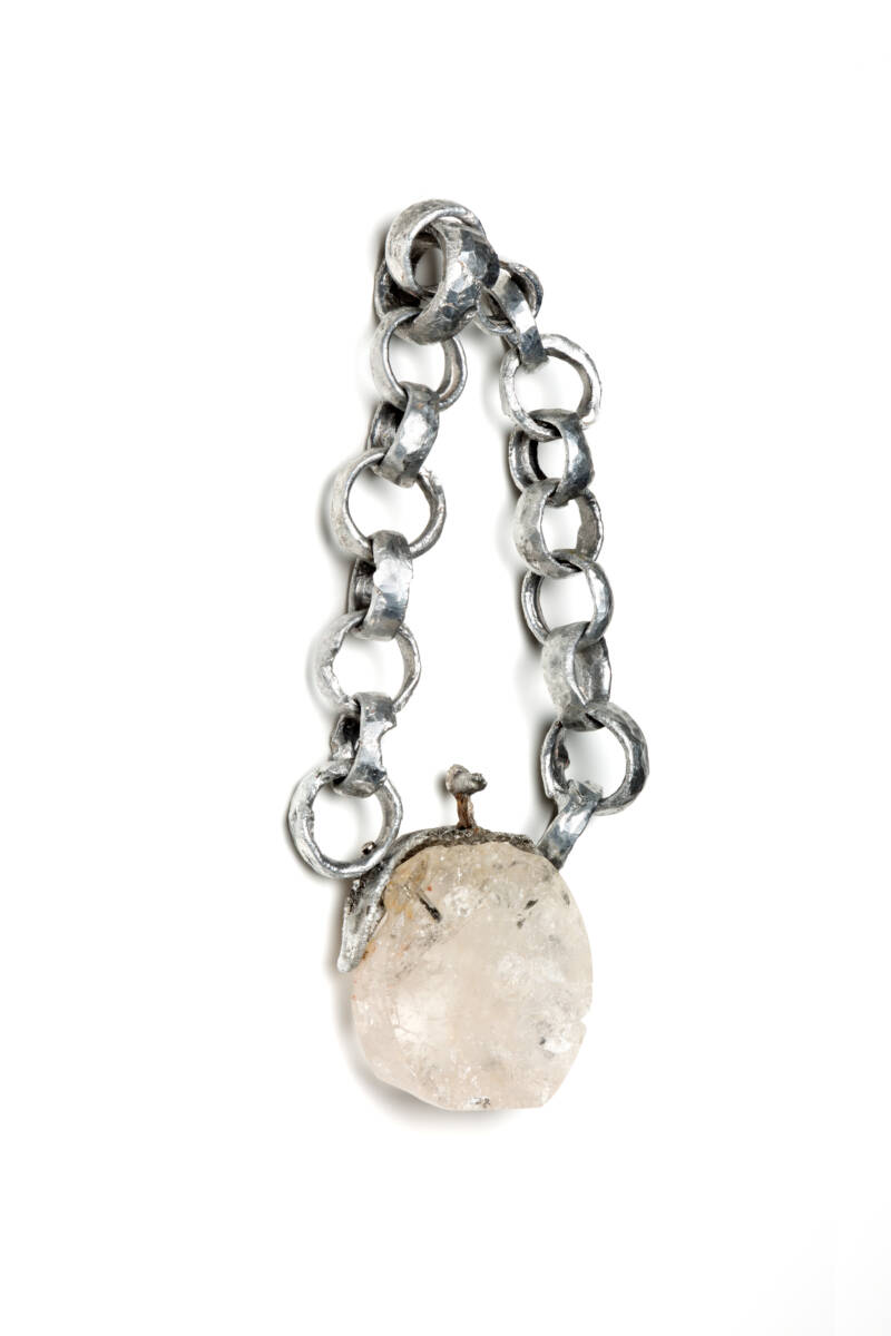 Annora Poppe’s necklace “Reflecting Landscape” plays with the illusion of heaviness, the impression of roughness and imperfection. The focus is on contrasting materials and processes. Processing by the human hand and by nature are compared with the native landscape. Furthermore, the design, for example in the shape of the purse, is inspired by elements of women’s costume from a specific Dutch region.