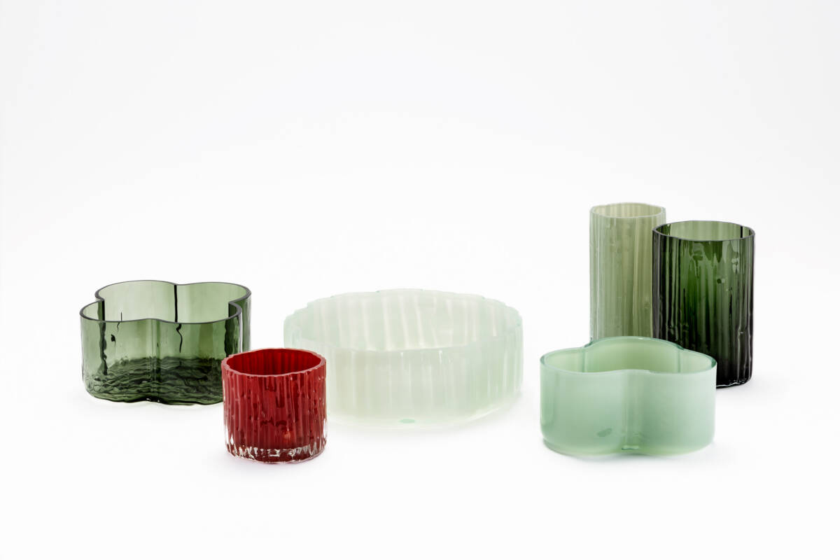 Dagmar Gerke’s groups of glass vessels fascinate with their richness of colours, shapes and surfaces. They are the result of her master’s thesis at the University of Applied Sciences and Arts in Hildesheim. Each group is based on a photograph taken during a trip to Taiwan. In this way, she creates a colour scale that is reflected in the glasses. The surfaces are also reminiscent of Taiwan as a travel destination, with the glasses being mouth-blown into shapes made from bamboo and Chinese reeds. Here, different elements from different cultures merge into one object.
